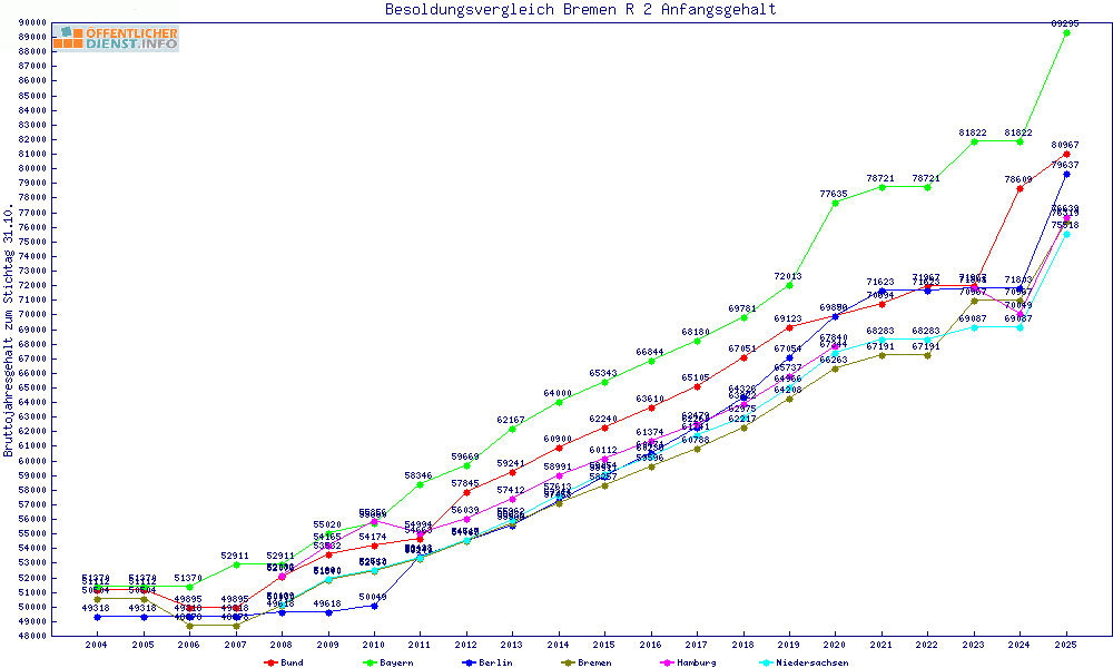 | Besoldungsvergleich R 2 im Jahr 2025 | Anfangsgehalt | ||||||