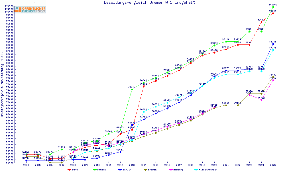 | Jahresgehalt brutto | im Vergleich mit Bremen |