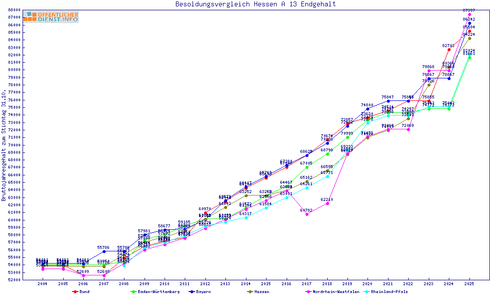 | Hessen | 84.224 € | +935 € | +1.1% | 23 Jahre | ||||