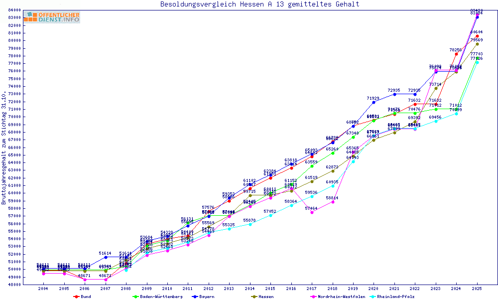 | Besoldungsvergleich A 13 im Jahr 2025 | gemitteltes Gehalt | ||||||