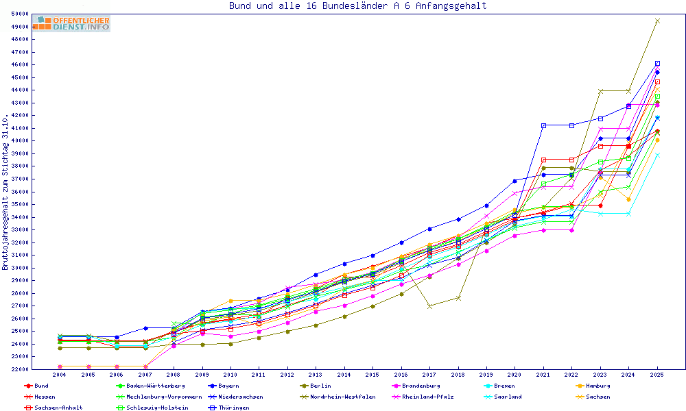 | Besoldungsvergleich A 6 im Jahr 2025 | Anfangsgehalt | ||||||