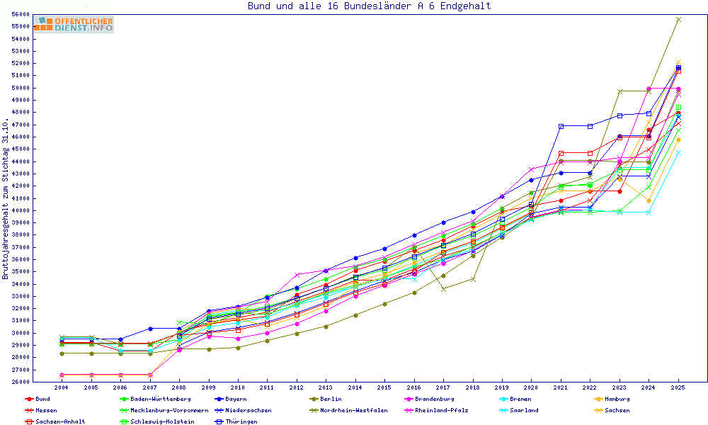| Besoldungsvergleich A 6 im Jahr 2025 | Endgehalt | |||||||