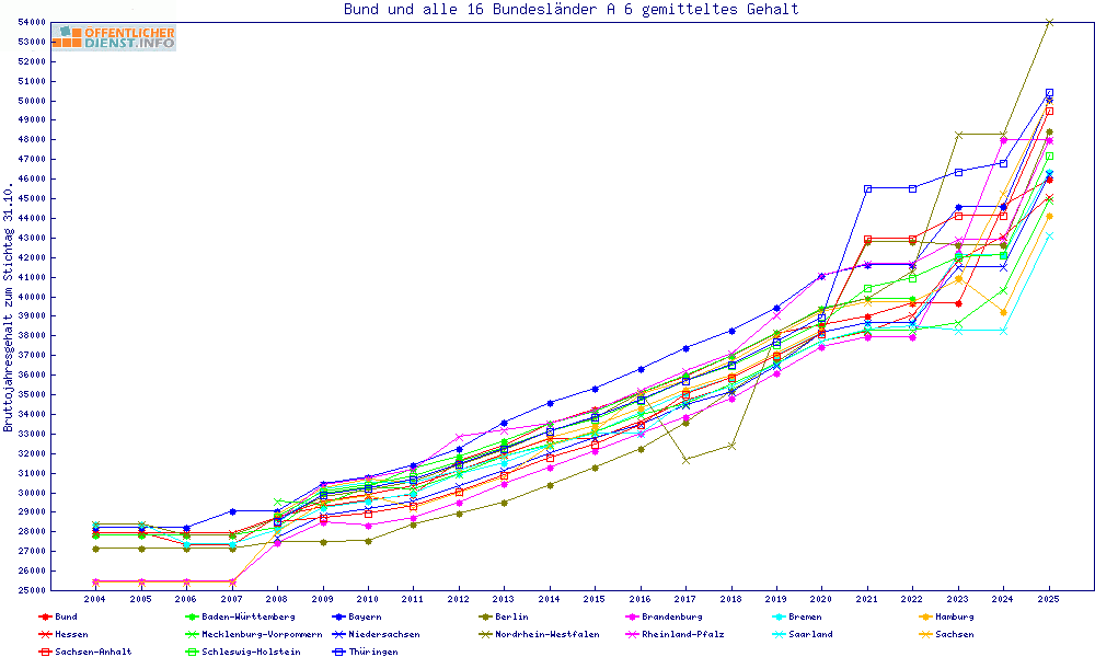 | Besoldungsvergleich A 6 im Jahr 2025 | gemitteltes Gehalt | ||||||