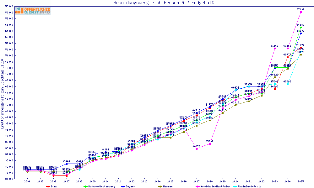 | Besoldungsvergleich A 7 im Jahr 2025 | Endgehalt | |||||||
