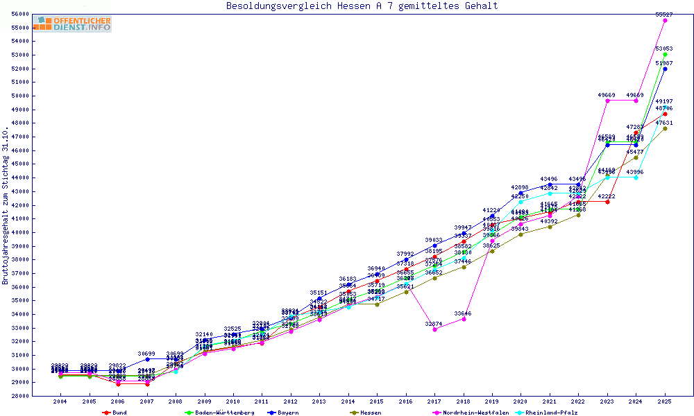 | Besoldungsvergleich A 7 im Jahr 2025 | gemitteltes Gehalt | ||||||