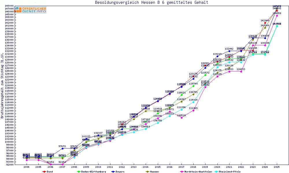 | Besoldungsvergleich B 6 im Jahr 2025 | gemitteltes Gehalt | ||||||