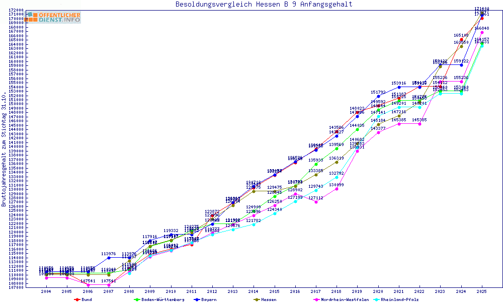 | Besoldungsvergleich B 9 im Jahr 2025 | Anfangsgehalt | ||||||