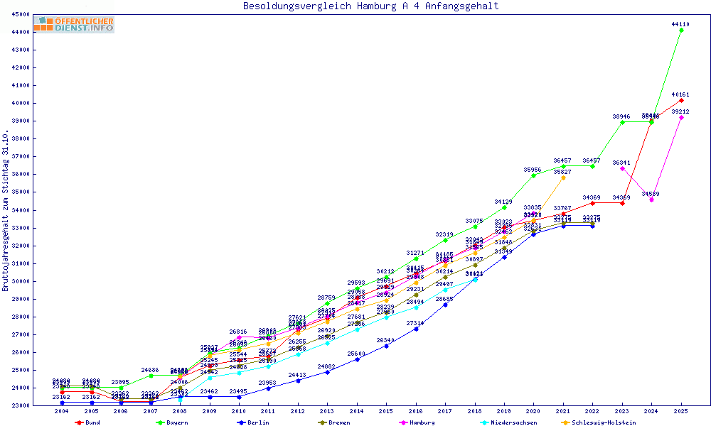 | Besoldungsvergleich A 4 im Jahr 2025 | Anfangsgehalt | ||||||