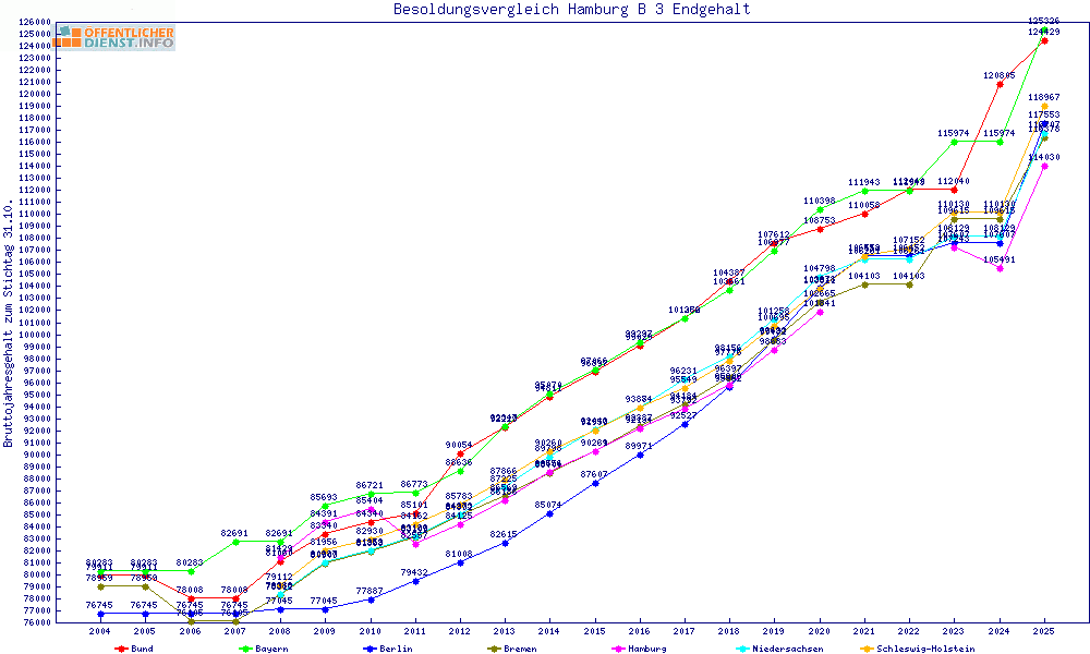 | Besoldungsvergleich B 3 im Jahr 2025 | gemitteltes Gehalt | ||||||