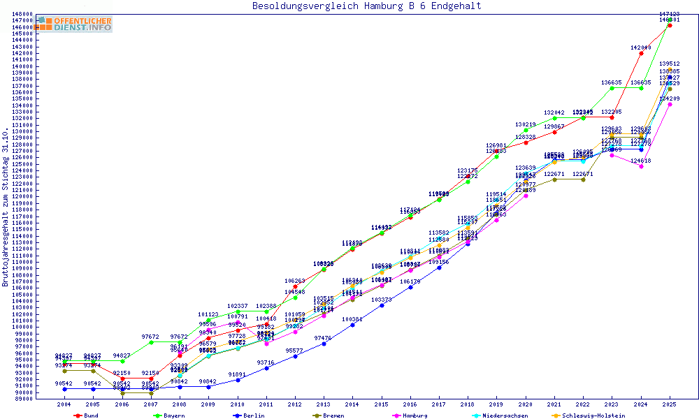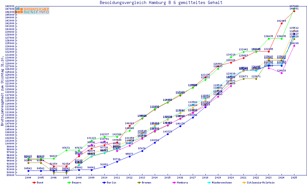 | Besoldungsvergleich B 6 im Jahr 2025 | gemitteltes Gehalt | ||||||
