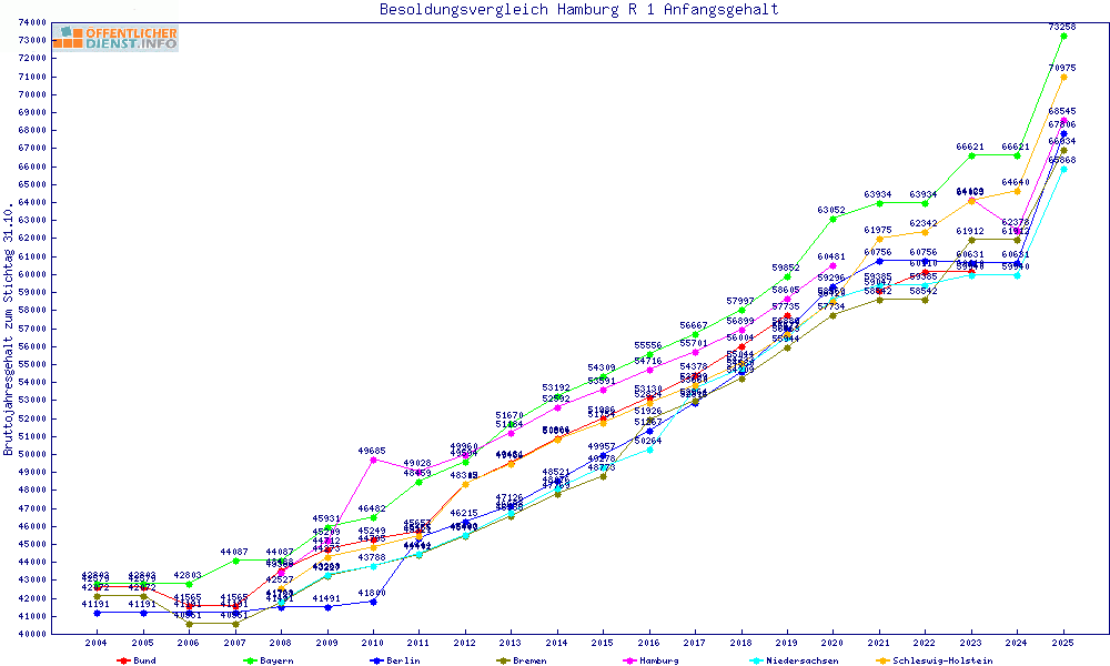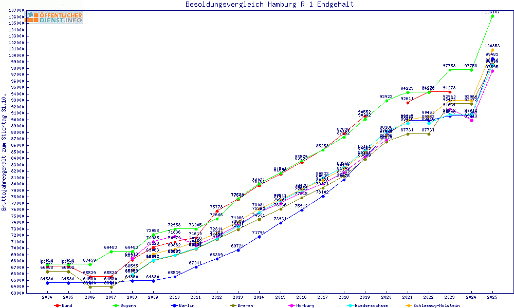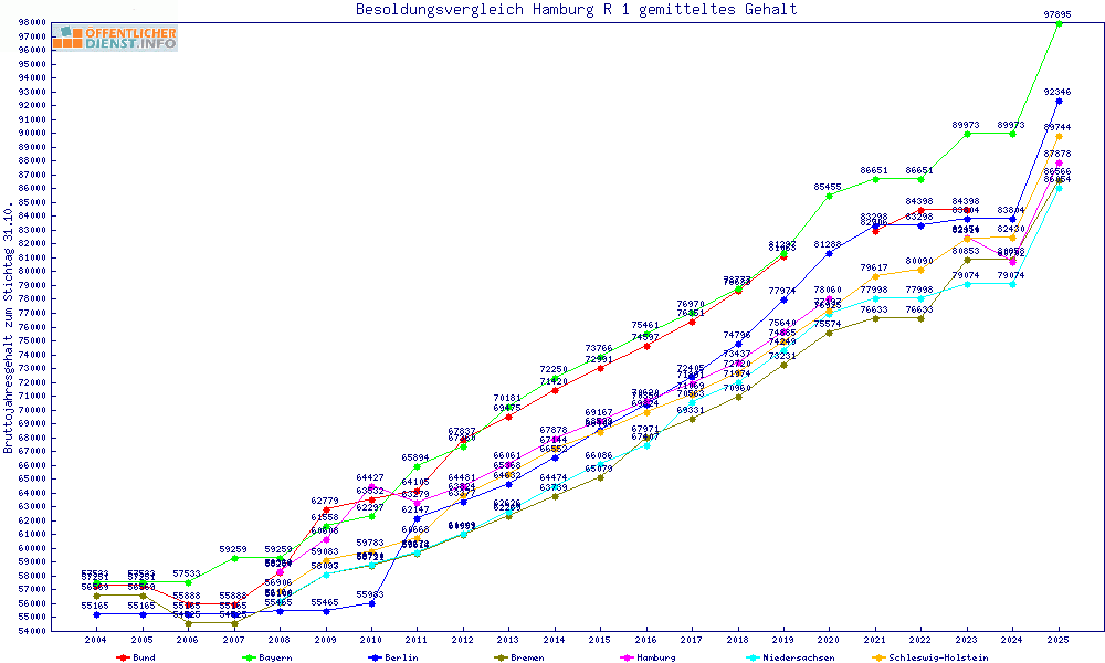 graphischer Besoldungsvergleich gemitteltes Gehalt aller Bundesländer