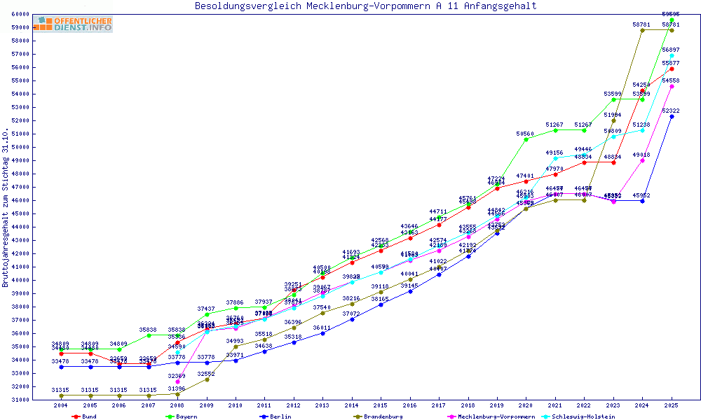 | Besoldungsvergleich A 11 im Jahr 2025 | Anfangsgehalt | ||||||