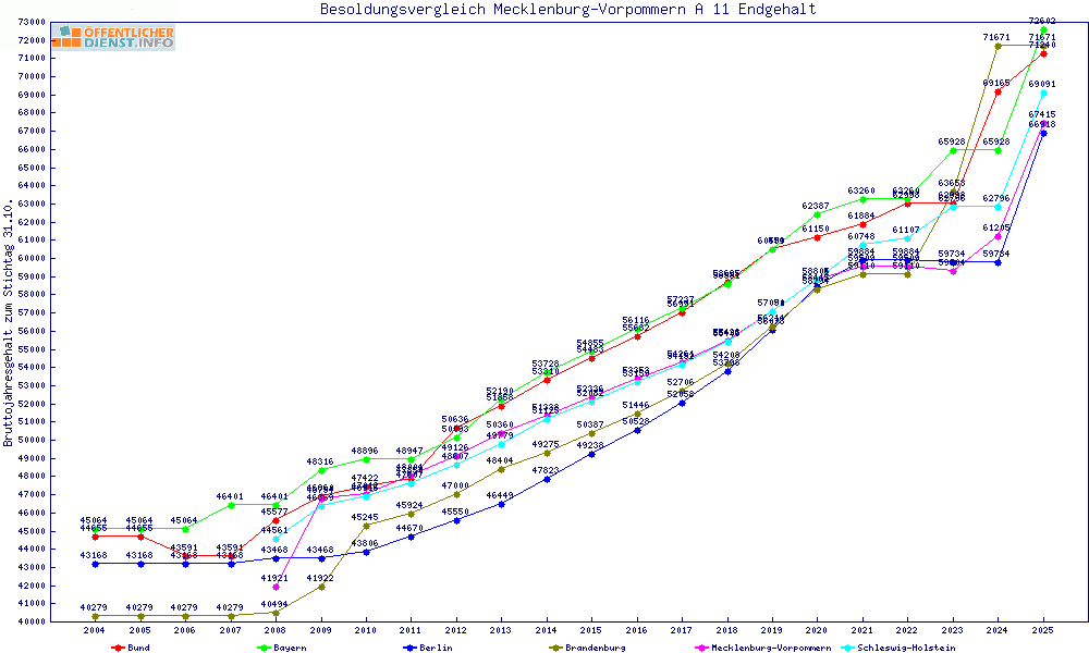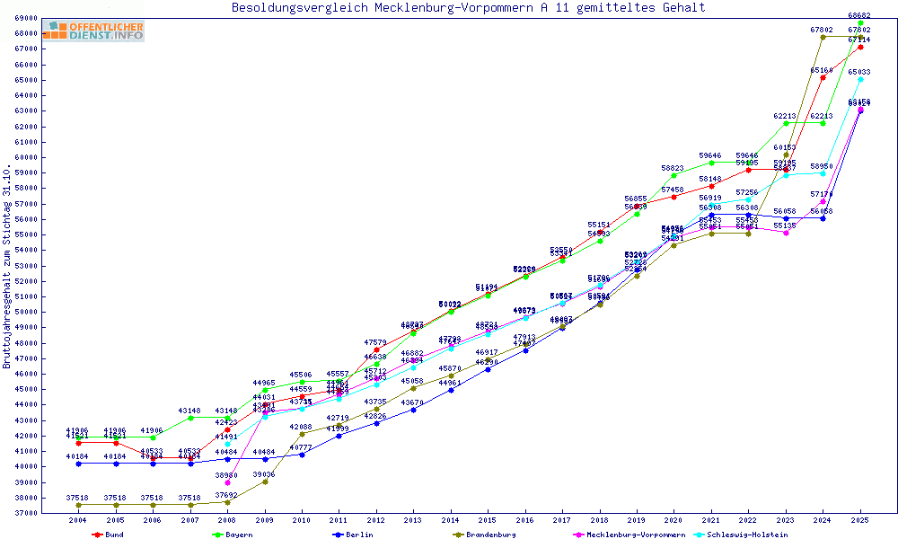 | Besoldungsvergleich A 11 im Jahr 2025 | gemitteltes Gehalt | ||||||
