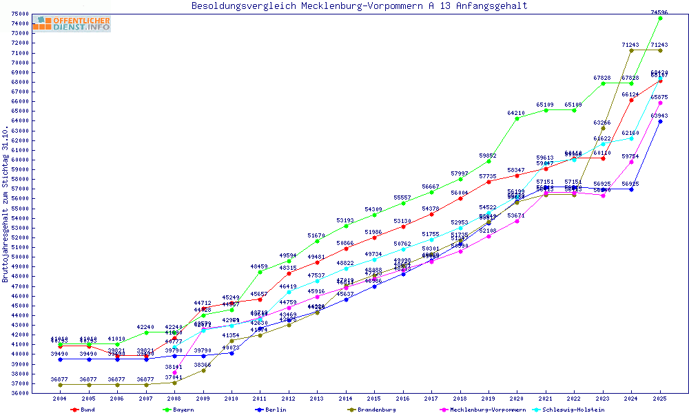 | Besoldungsvergleich A 13 im Jahr 2025 | Anfangsgehalt | ||||||