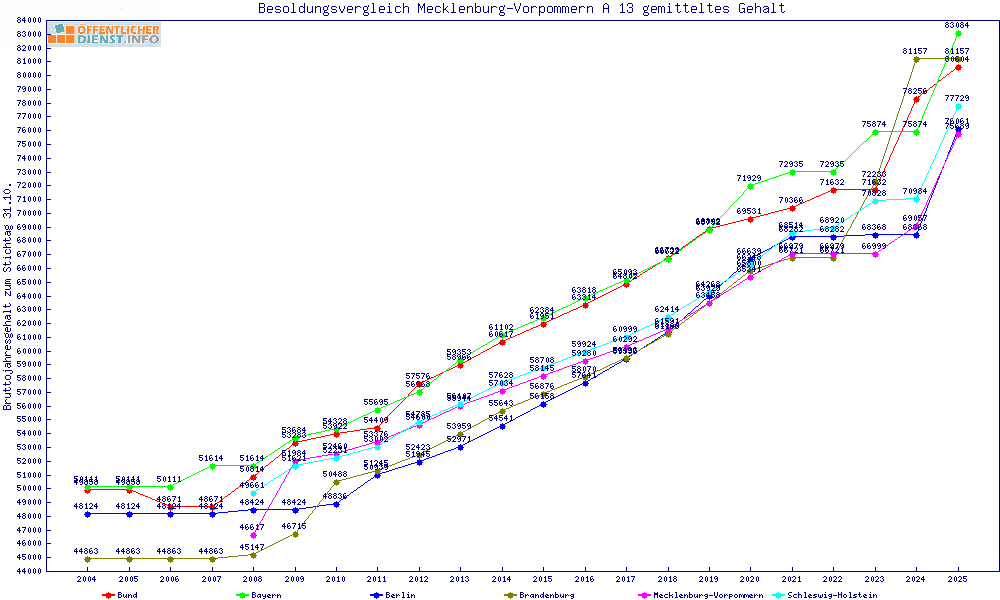 | Besoldungsvergleich A 13 im Jahr 2025 | gemitteltes Gehalt | ||||||