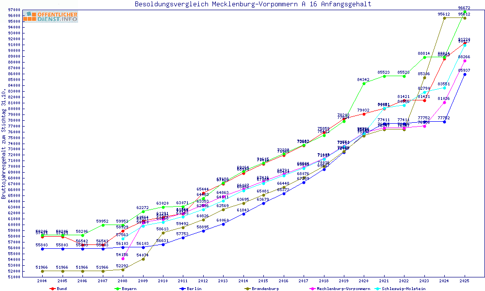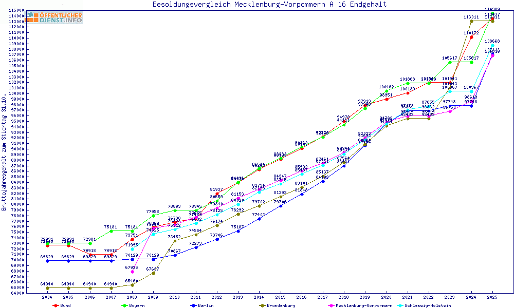 | Besoldungsvergleich A 16 im Jahr 2025 | Anfangsgehalt | ||||||