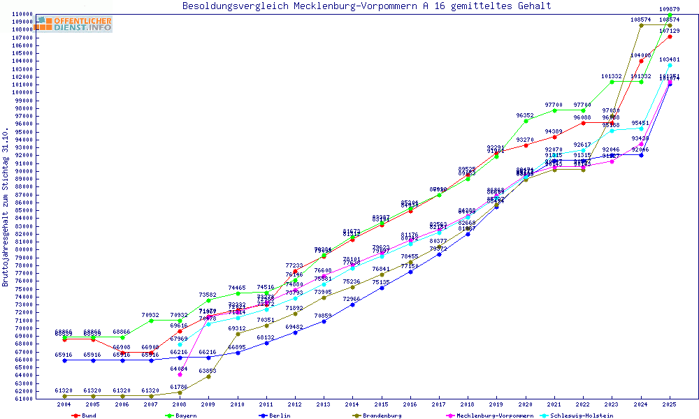 | Besoldungsvergleich A 16 im Jahr 2025 | gemitteltes Gehalt | ||||||