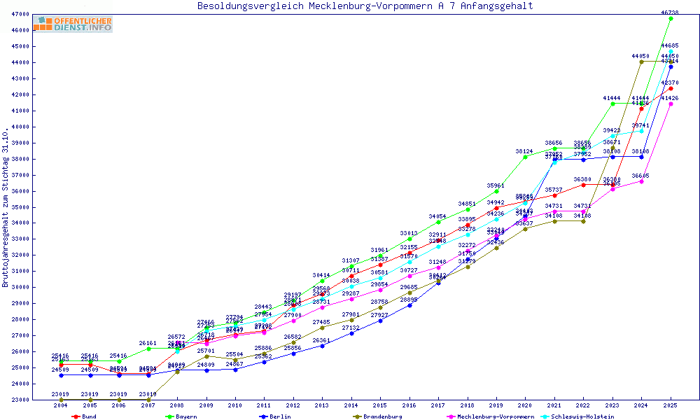 | Besoldungsvergleich A 7 im Jahr 2025 | Anfangsgehalt | ||||||