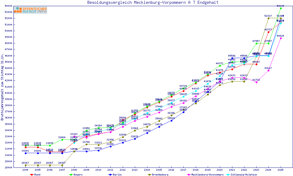 | Besoldungsvergleich A 7 im Jahr 2025 | Endgehalt | |||||||