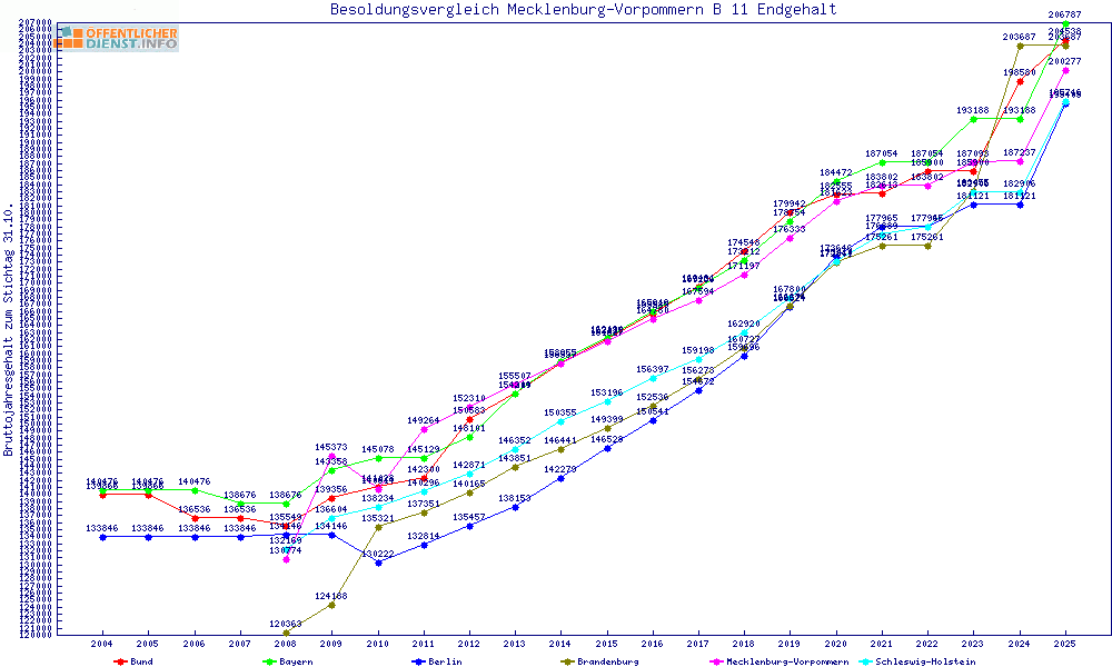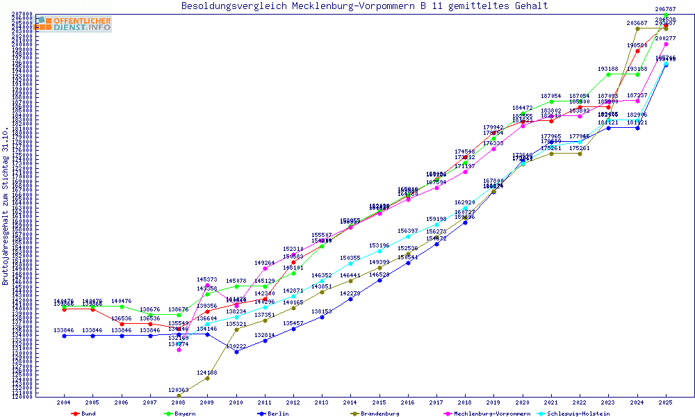 | Besoldungsvergleich B 11 im Jahr 2025 | gemitteltes Gehalt | ||||||
