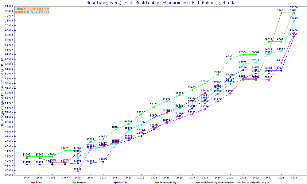 | Besoldungsvergleich R 1 im Jahr 2025 | Anfangsgehalt | ||||||