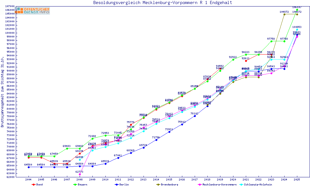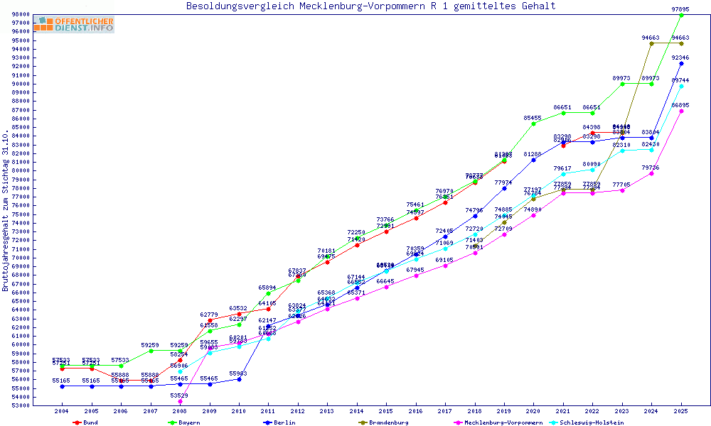| Mecklenburg-Vorpommern | 68.458 € | -1054 € | -1.5% | ||||