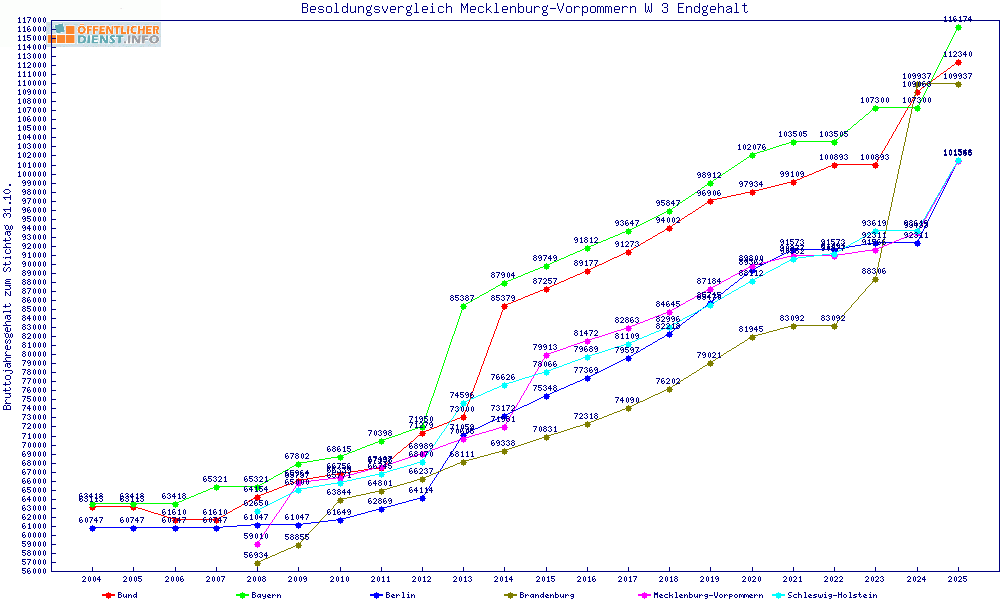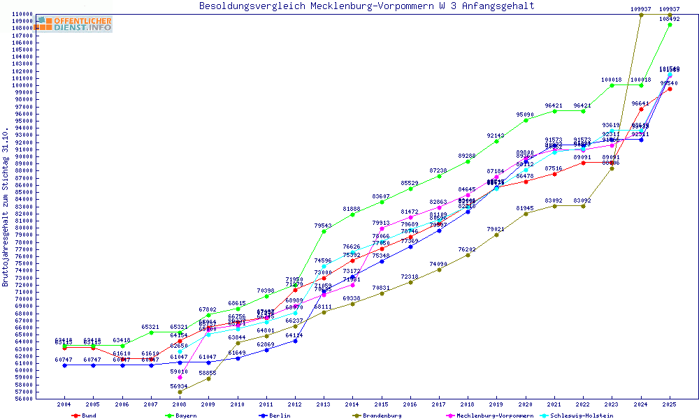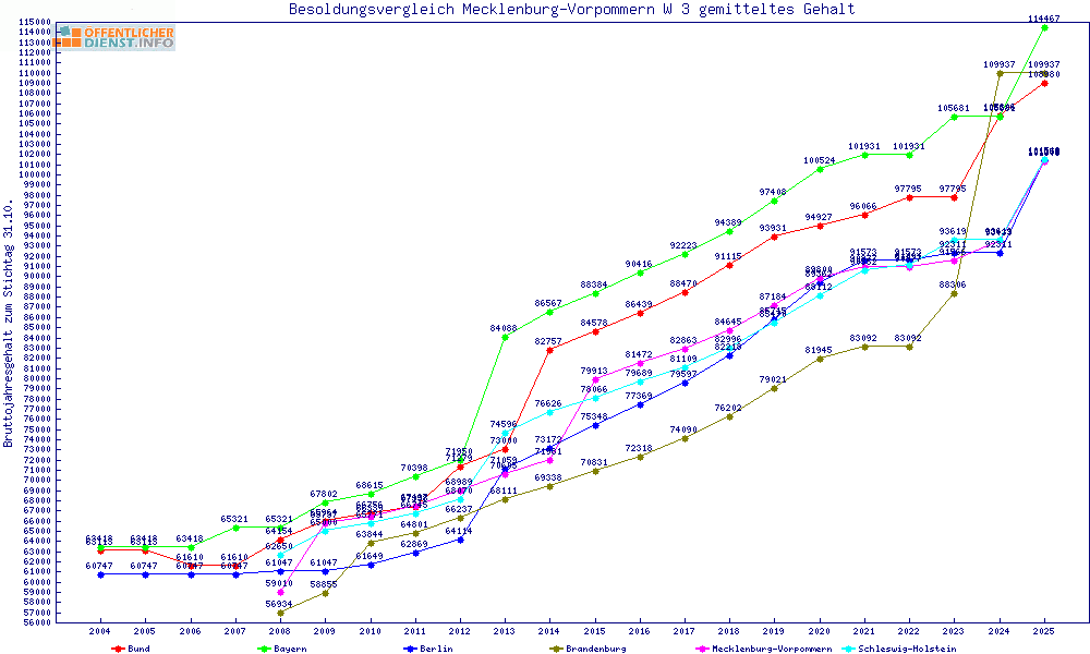 | Sachsen-Anhalt | 103.954 € | +2608 € | +2.6% | +3000 € | +3.0% | ||