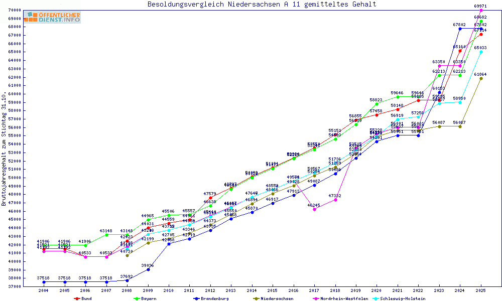 | Besoldungsvergleich A 11 im Jahr 2025 | gemitteltes Gehalt | ||||||