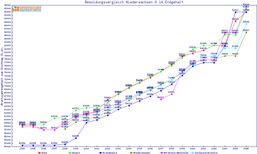 | Besoldungsvergleich A 14 im Jahr 2025 | Anfangsgehalt | ||||||