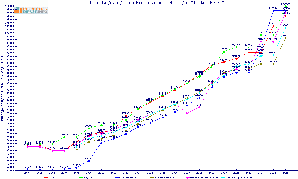 | Besoldungsvergleich A 16 im Jahr 2025 | gemitteltes Gehalt | ||||||