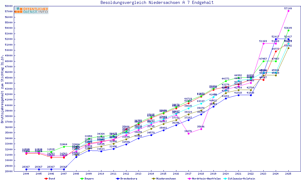 | Besoldungsvergleich A 7 im Jahr 2025 | Endgehalt | |||||||