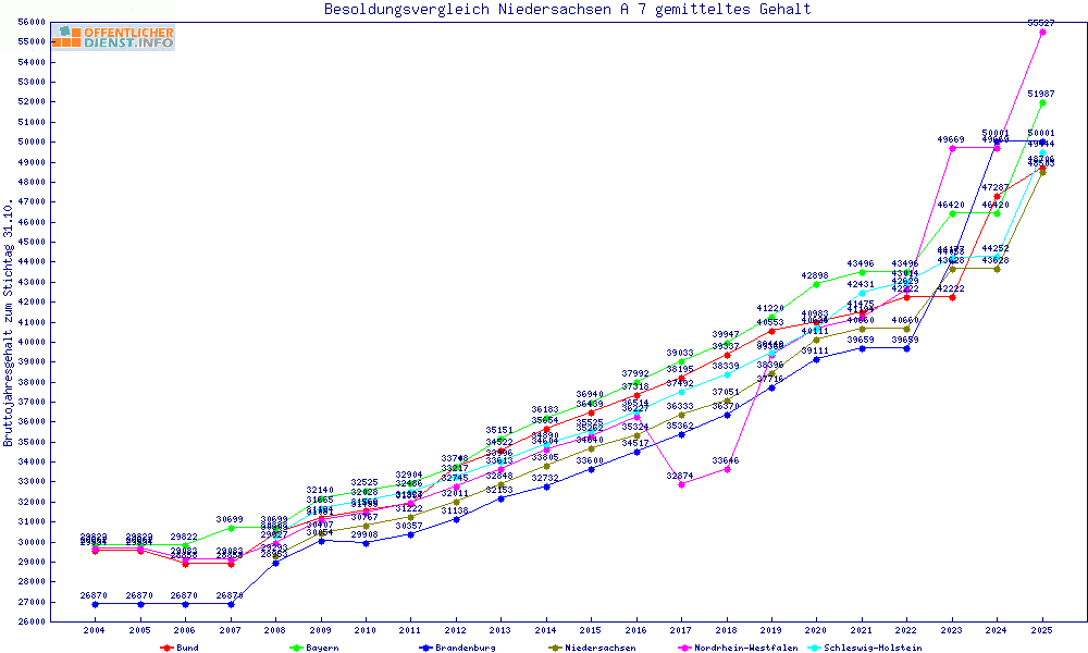| Besoldungsvergleich A 7 im Jahr 2025 | gemitteltes Gehalt | ||||||