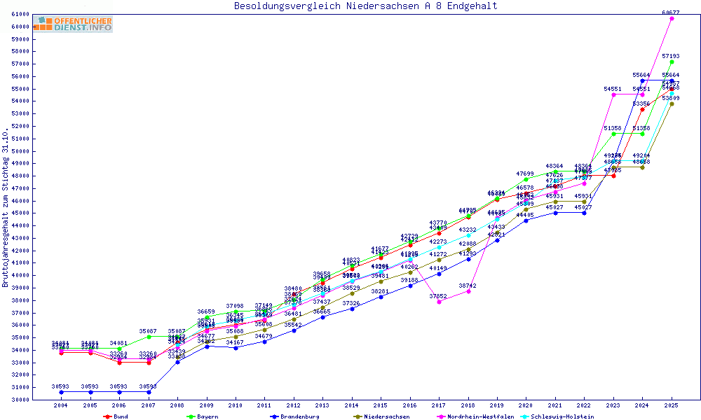 | Besoldungsvergleich A 8 im Jahr 2025 | Endgehalt | |||||||