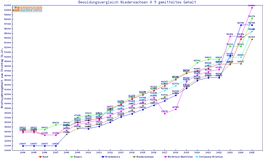 | Besoldungsvergleich A 9 im Jahr 2025 | gemitteltes Gehalt | ||||||