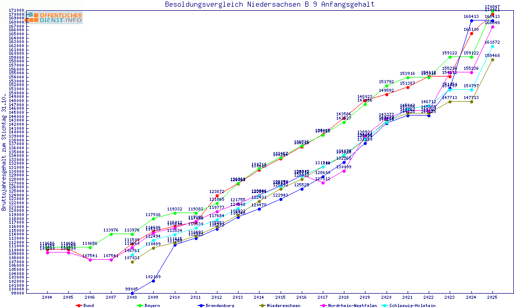 | Besoldungsvergleich B 9 im Jahr 2025 | Anfangsgehalt | ||||||