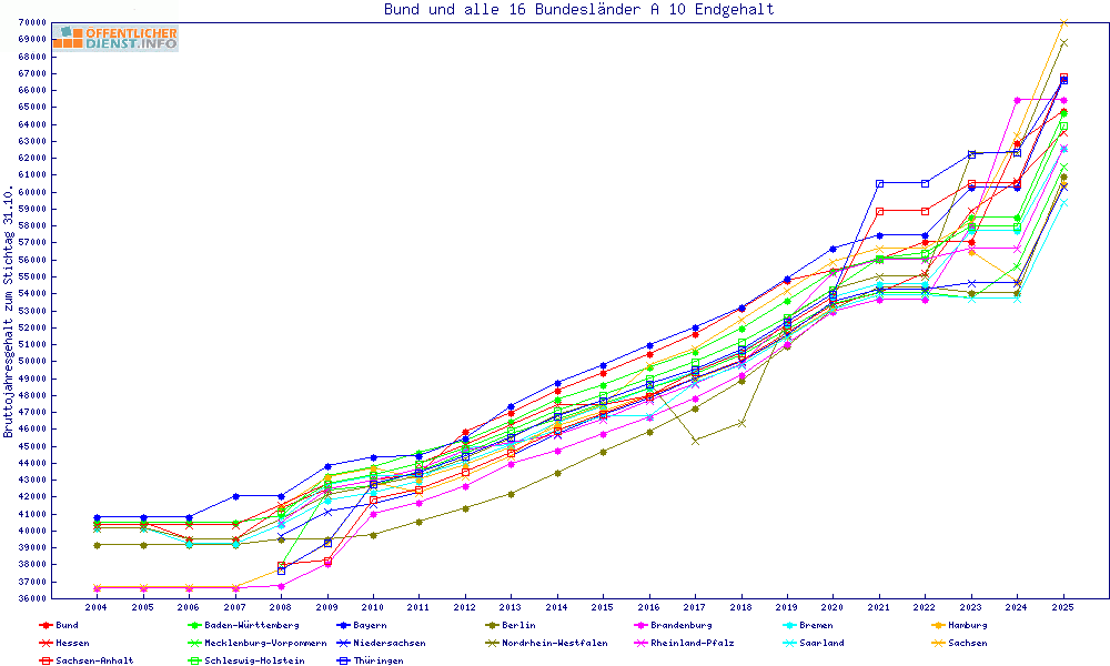| Besoldungsvergleich A 10 im Jahr 2025 | Endgehalt | |||||||