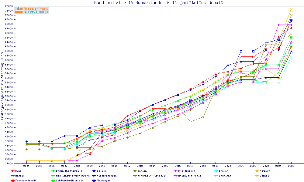| Besoldungsvergleich A 11 im Jahr 2025 | gemitteltes Gehalt | ||||||