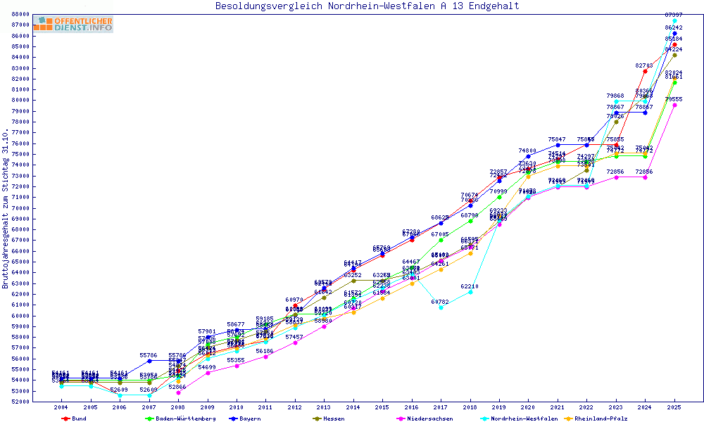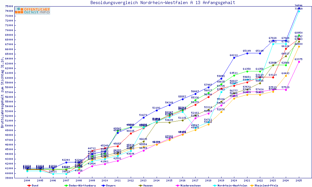 | Besoldungsvergleich A 13 im Jahr 2025 | Anfangsgehalt | ||||||