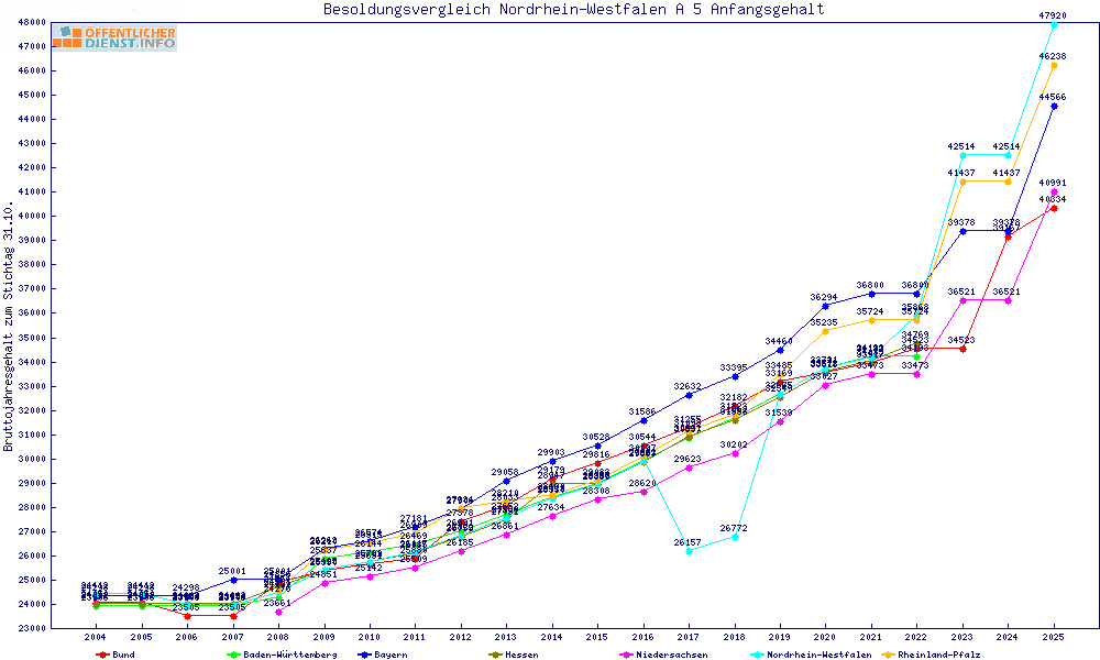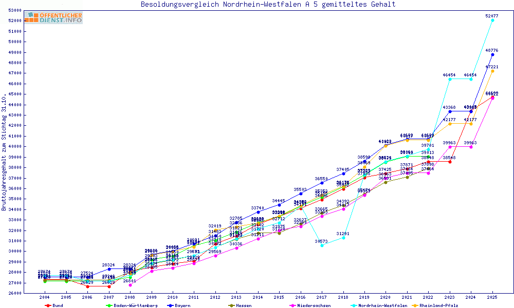 | Besoldungsvergleich A 5 im Jahr 2025 | gemitteltes Gehalt | ||||||