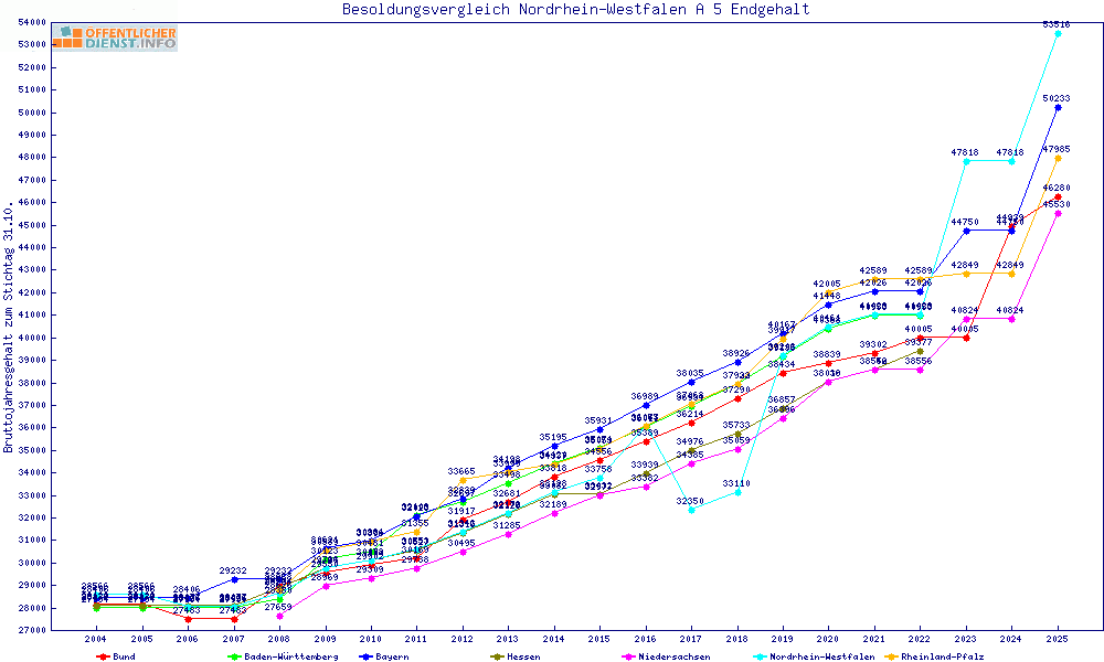 | Besoldungsvergleich A 5 im Jahr 2025 | Endgehalt | |||||||
