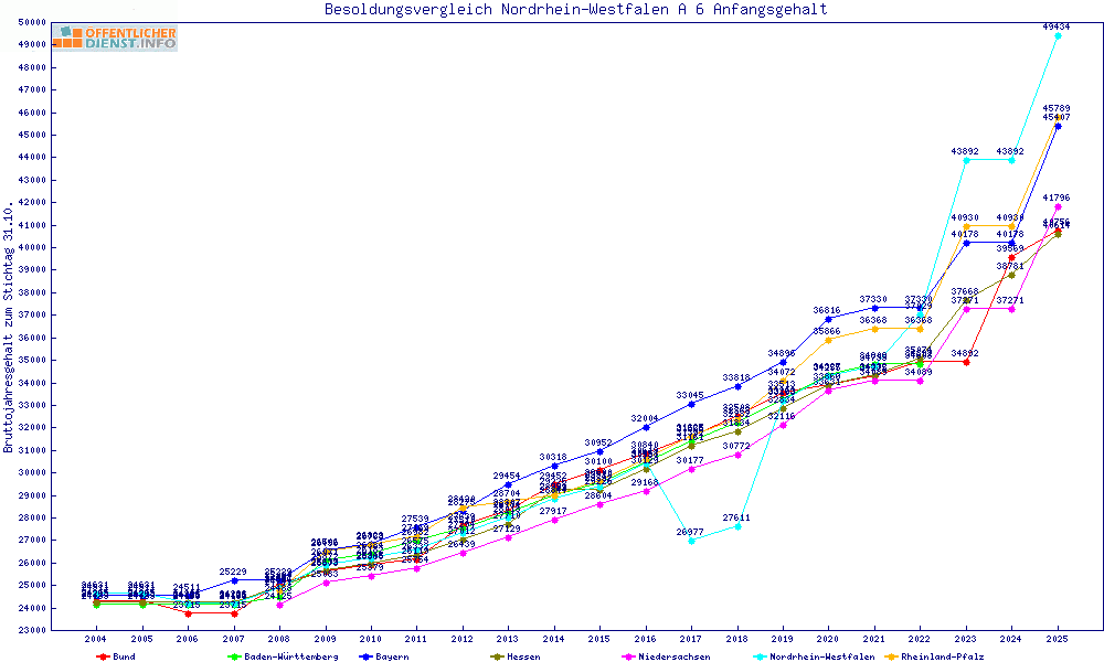 | Besoldungsvergleich A 6 im Jahr 2025 | Anfangsgehalt | ||||||
