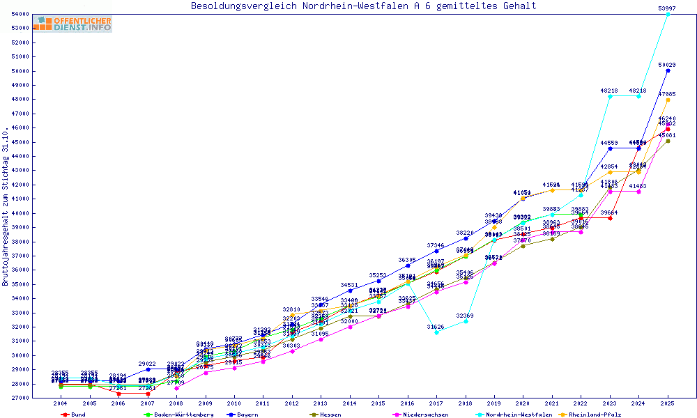 | Besoldungsvergleich A 6 im Jahr 2025 | gemitteltes Gehalt | ||||||