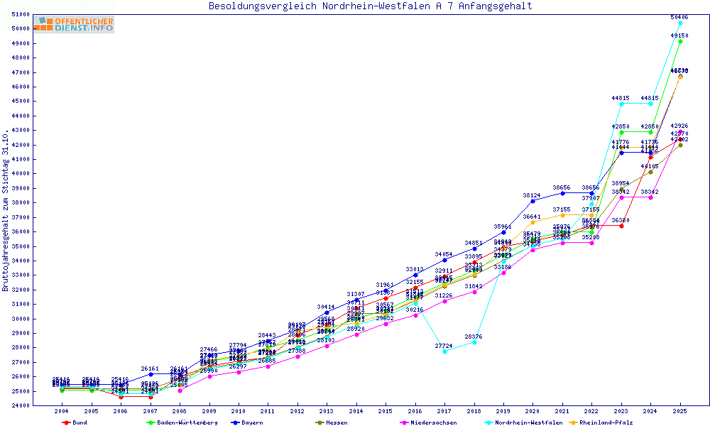 | Besoldungsvergleich A 7 im Jahr 2025 | Anfangsgehalt | ||||||