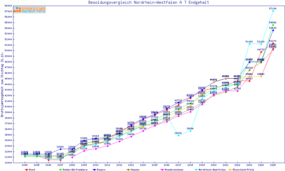 | Besoldungsvergleich A 7 im Jahr 2025 | Endgehalt | |||||||