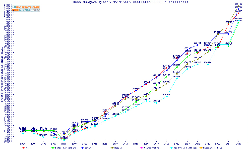 | Besoldungsvergleich B 11 im Jahr 2025 | Anfangsgehalt | ||||||