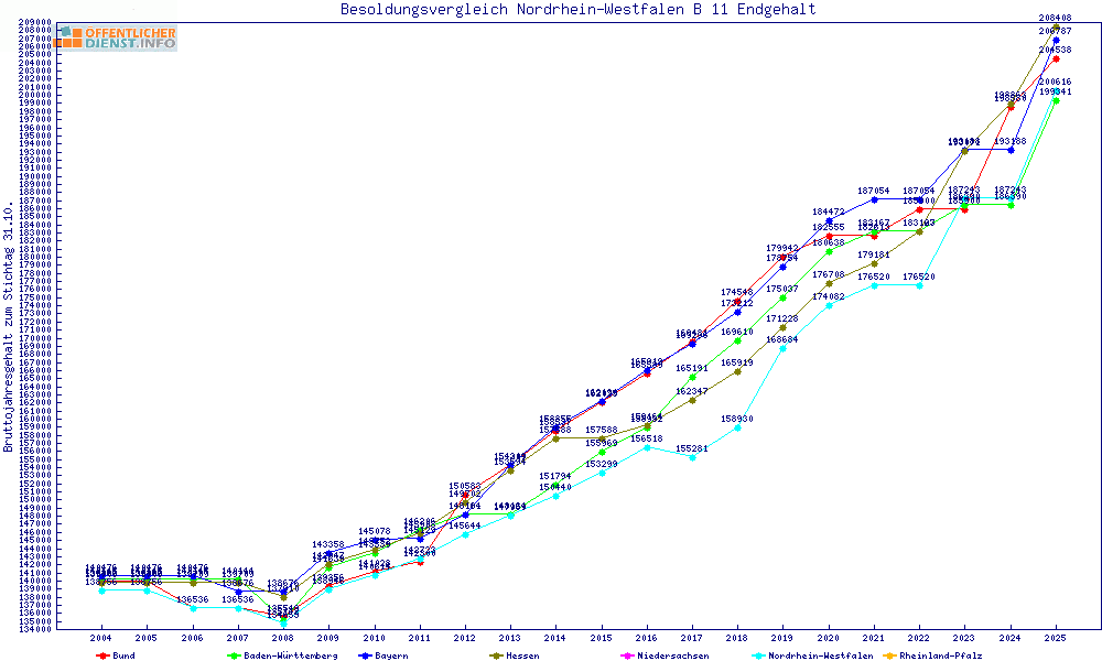 | Besoldungsvergleich B 11 im Jahr 2025 | Endgehalt | |||||||