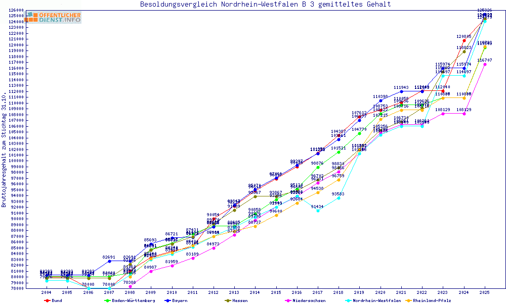 | Besoldungsvergleich B 3 im Jahr 2025 | gemitteltes Gehalt | ||||||