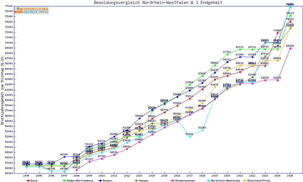 | Besoldungsvergleich W 1 im Jahr 2025 | Anfangsgehalt | ||||||