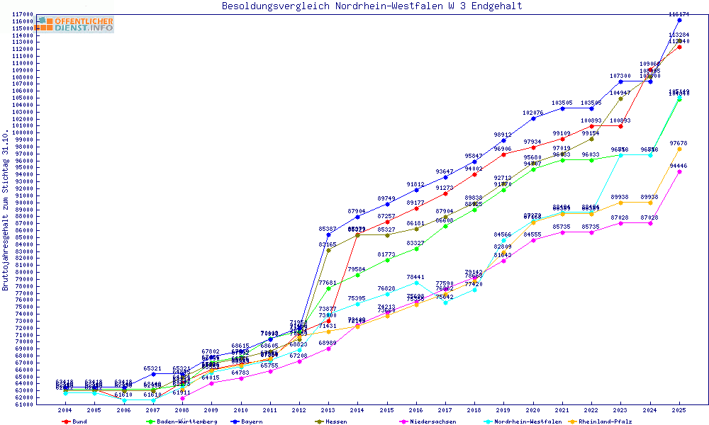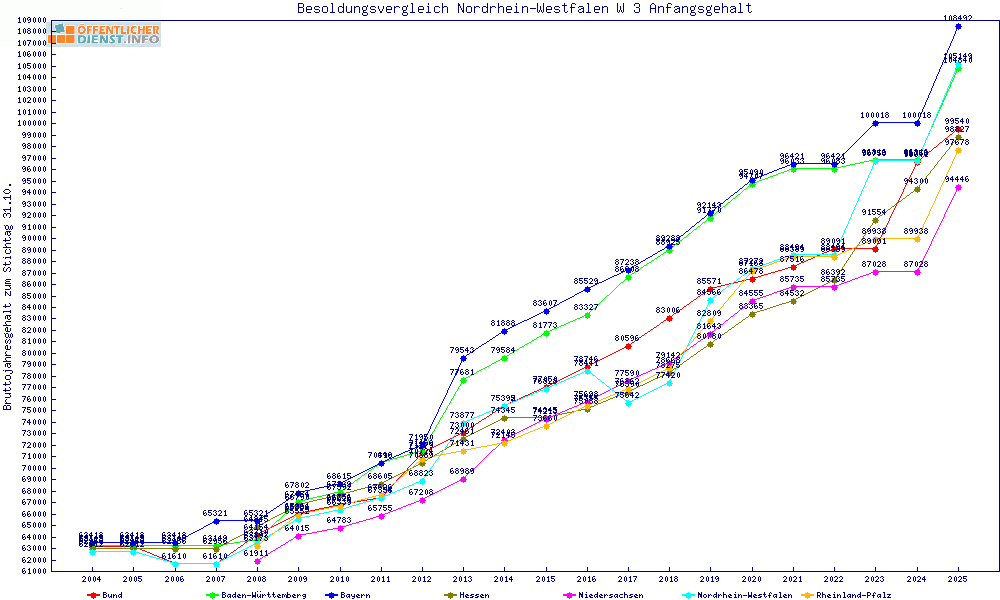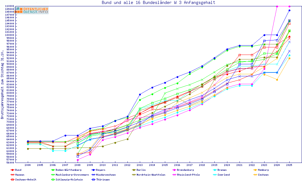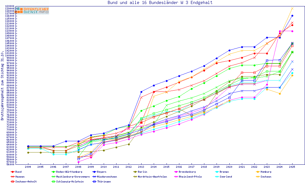 | Besoldungsvergleich W 3 im Jahr 2025 | Anfangsgehalt | ||||||