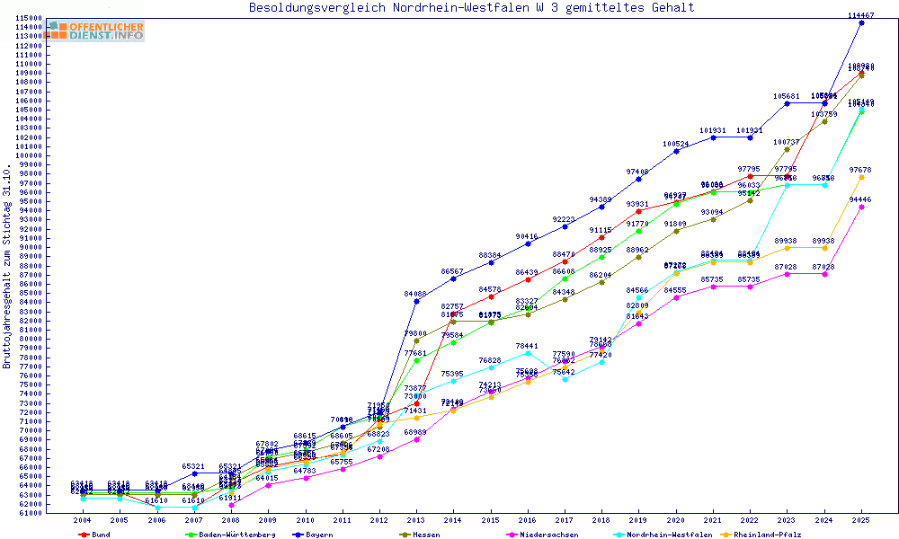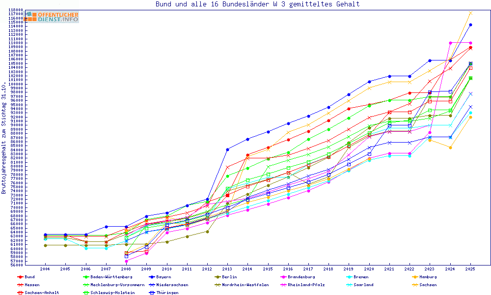 | Besoldungsvergleich W 3 im Jahr 2025 | gemitteltes Gehalt | ||||||